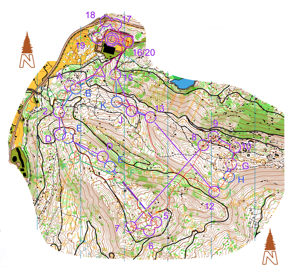 One part of the mistake I now attribute to the mental delay for interpreting complex maps. The topography in Flims is insanely random, a cluster fuck of contours and rocks, the hummocks of an ancient landslide. The mapping of this is special as significant generalisation needs to take place. I compare it to Rowdy Flat in Victoria, Australia. The implication for an orienteer, is that relating the map to terrain takes longer as what you see in the terrain is not necessarily what you expect to see from the map. The map-to-terrain “fuzziness” is increased. I had clearly not mastered the technical challenges at race speed – a more conservative start would have been prudent, but that’s not how I like to orienteer.