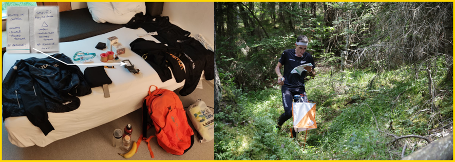 Pre-race gear and mid-race, control 13, in the Middle Final.